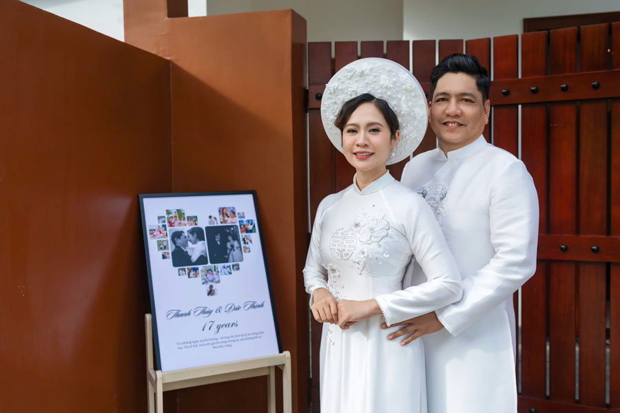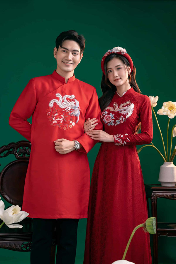 Áo dài cưới luôn là lựa chọn tinh tế và ý nghĩa cho các cặp đôi trong dịp kỷ niệm ngày cưới. Với cô dâu, áo dài ren hoặc lụa, kết hợp thêu tay hoa văn tinh xảo, mang đến sự duyên dáng và dịu dàng.