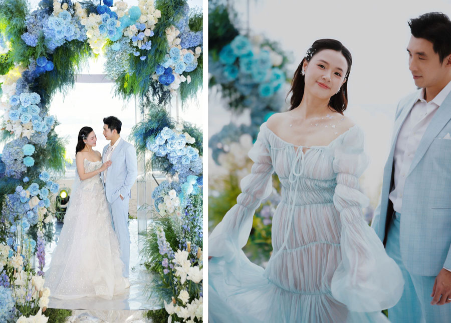 Một ý tưởng thú vị là cặp đôi có thể tái hiện lại bộ trang phục cưới trong ngày trọng đại đầu tiên. Dù không mặc lại toàn bộ váy cưới và vest cũ, nhưng có thể tái hiện qua màu sắc, chất liệu hoặc chi tiết thiết kế. Đây là cách để gợi nhớ những kỷ niệm đẹp và tạo nên sự xúc động trong buổi tiệc.