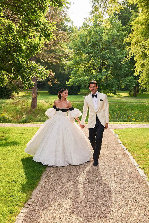 Một chiếc váy cưới dáng chữ A, thiết kế đơn giản nhưng tinh tế, kết hợp cùng bộ vest đơn sắc sẽ mang lại cảm giác gần gũi mà vẫn thanh lịch. Đây là phong cách phù hợp cho những cặp đôi yêu thích sự giản dị, không cầu kỳ nhưng vẫn muốn thể hiện sự gắn kết trong ngày kỷ niệm.