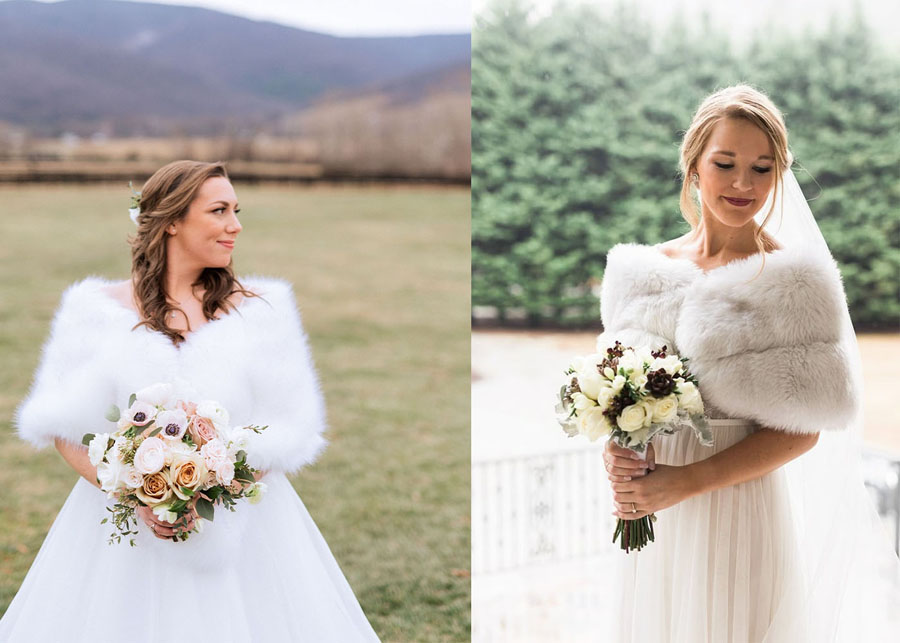 Áo choàng cô dâu lông là lựa chọn không thể bỏ qua khi nhắc đến váy cưới mùa đông. Các thiết kế cape lông nhẹ, mềm và mịn không chỉ giữ ấm tốt mà còn mang đến vẻ đẹp quý phái.