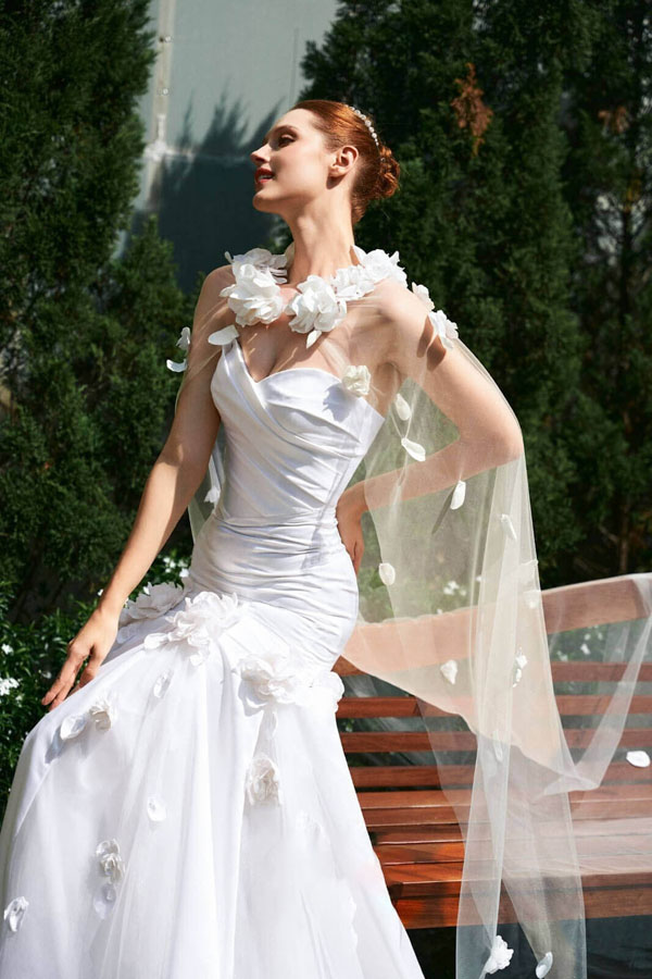Váy cưới cape voan dài – mềm mại và thanh thoát