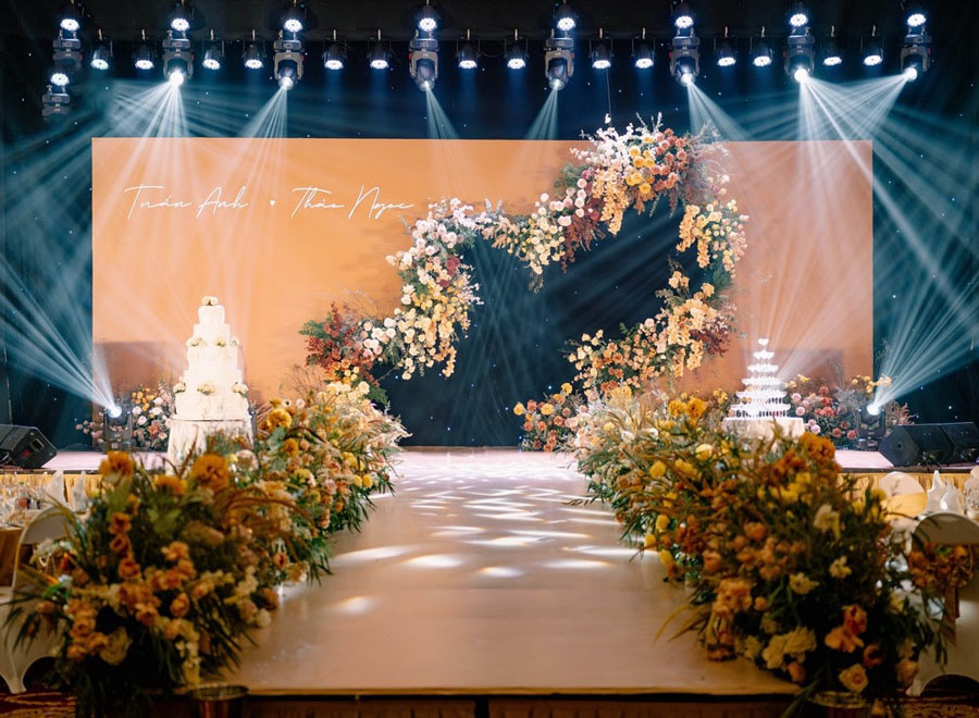 Sự đồng điệu tổng thể: Hãy để bảng màu trang trí tiệc cưới xuyên suốt từ hoa cưới, thiệp mời, phông nền đến trang phục để tạo dấu ấn riêng cho ngày trọng đại.