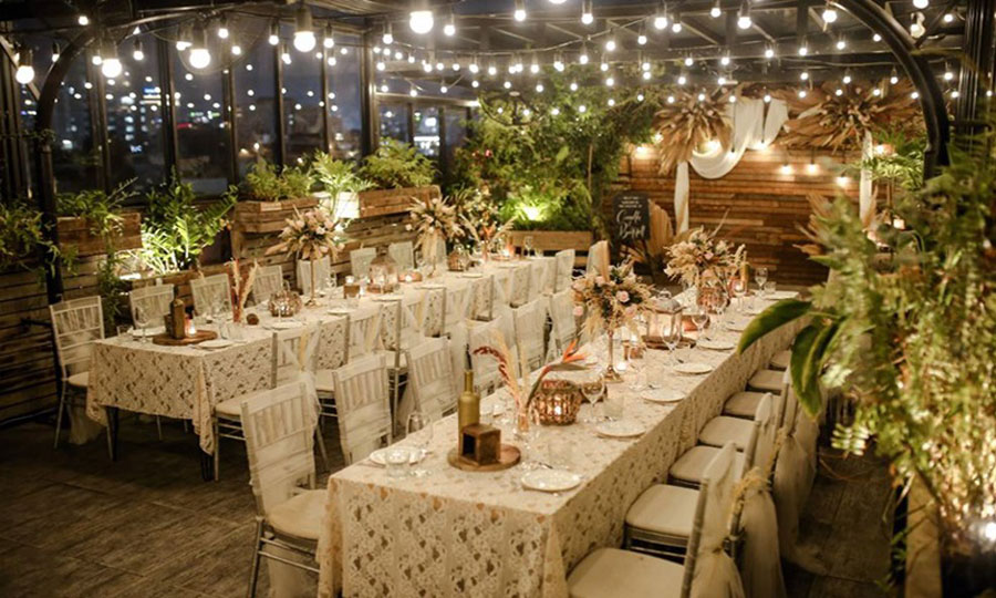 Nếu bạn yêu thích sự ấm cúng, nhẹ nhàng, quán café là địa điểm tổ chức kỷ niệm ngày cưới lý tưởng. Hiện nay, nhiều quán café tại TP.HCM được thiết kế theo phong cách sân vườn, rooftop hoặc vintage, rất phù hợp để tổ chức một buổi tiệc nhỏ xinh.