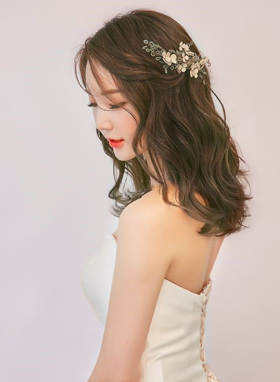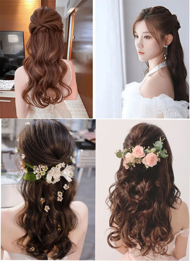 4. Tóc xoăn cô dâu nửa đầu