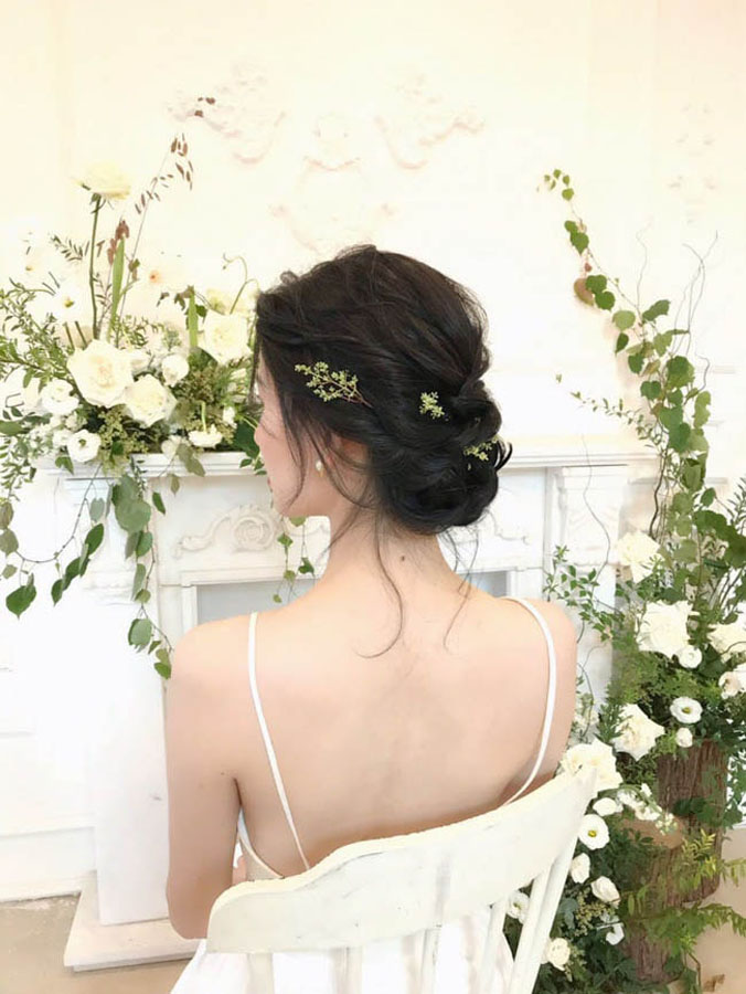 Bạn có thể điểm thêm hoa tươi hoặc phụ kiện nhỏ để tăng sự nổi bật cho cô dâu.