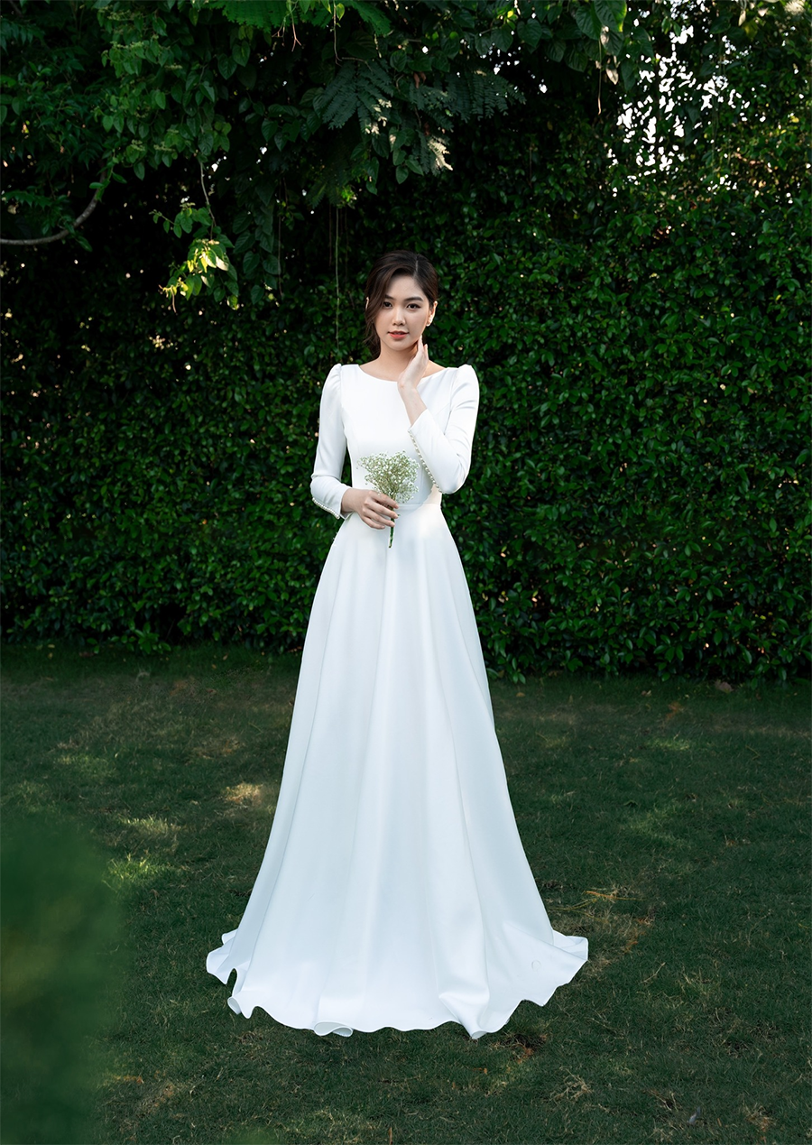 Nếu buổi kỷ niệm cưới diễn ra trong không gian nhỏ gọn, ấm cúng bên gia đình và bạn bè thân thiết, cặp đôi có thể lựa chọn trang phục kỷ niệm ngày cưới phong cách tối giản.