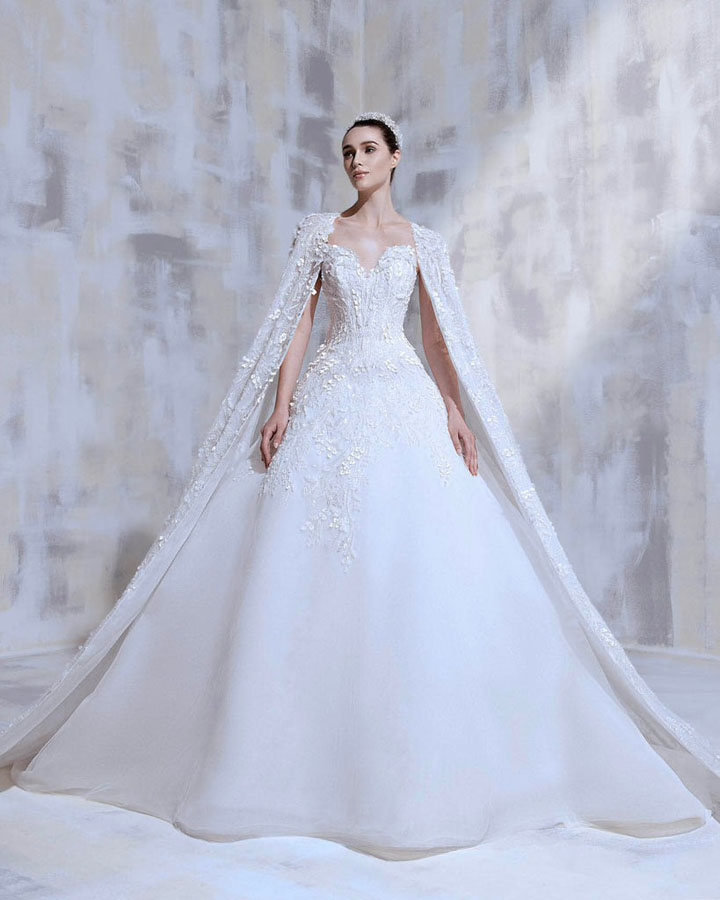 Váy cưới cape dạng choàng hoàng gia – quyền lực và đẳng cấp