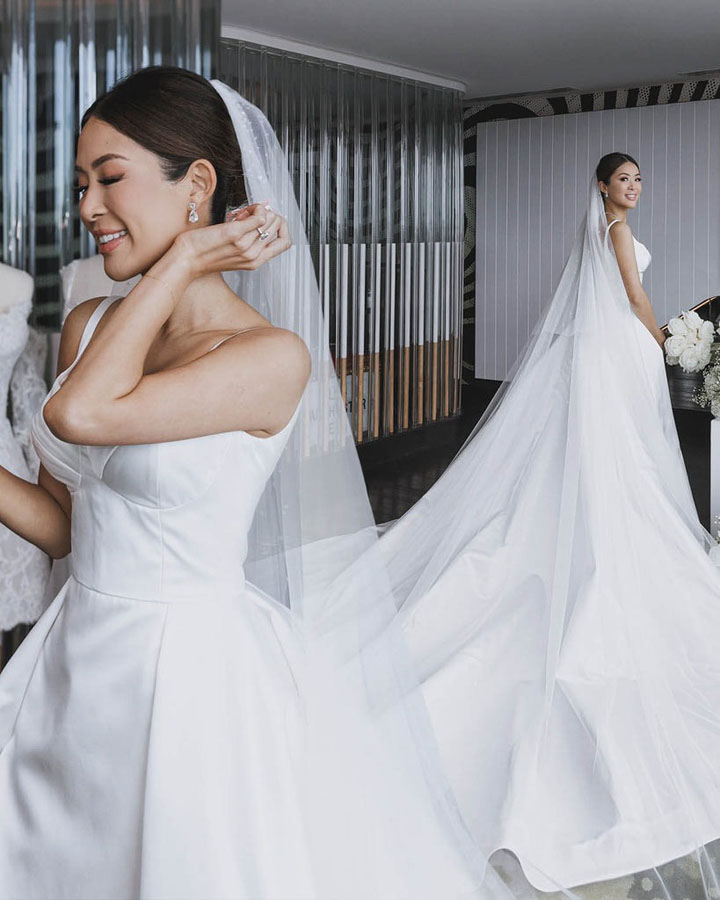 Cape ngắn cũng phù hợp với cô dâu có vóc dáng nhỏ vì không làm tổng thể bị “nuốt dáng”.